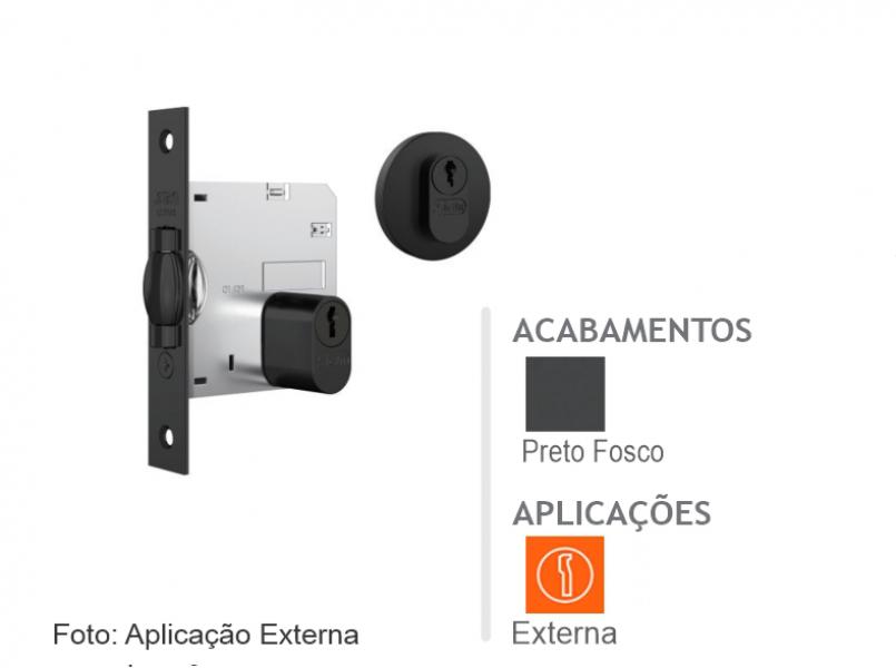Fechadura Stam Pivotante 1005 Roseta Externa Redonda Preta